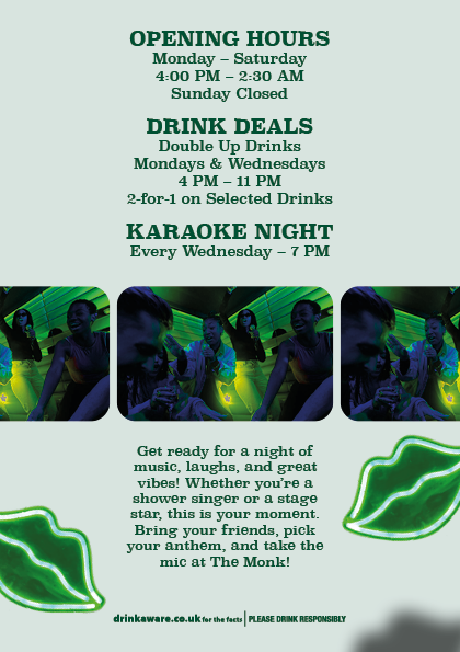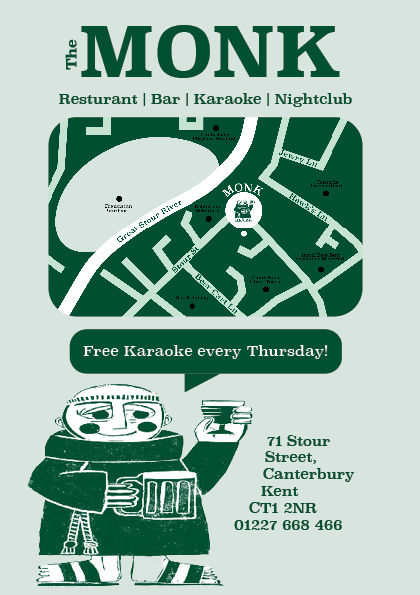 Karaoke flyer for The Monk Bar, Sheffield.