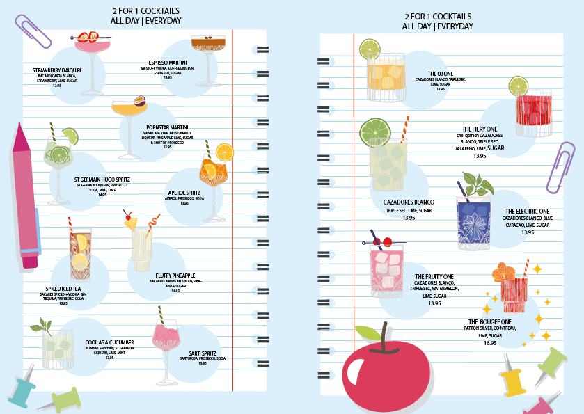 Back-to-school themed cocktail menu for Soho Rooms, Jesmond.